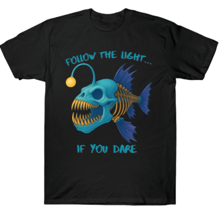Our designs aren’t stock graphics or trendy clipart. Every skeleton, wing, blade, and shadow is hand-crafted in our studio to feel like a story you can wear—recognizable from across the room and unmistakably yours.